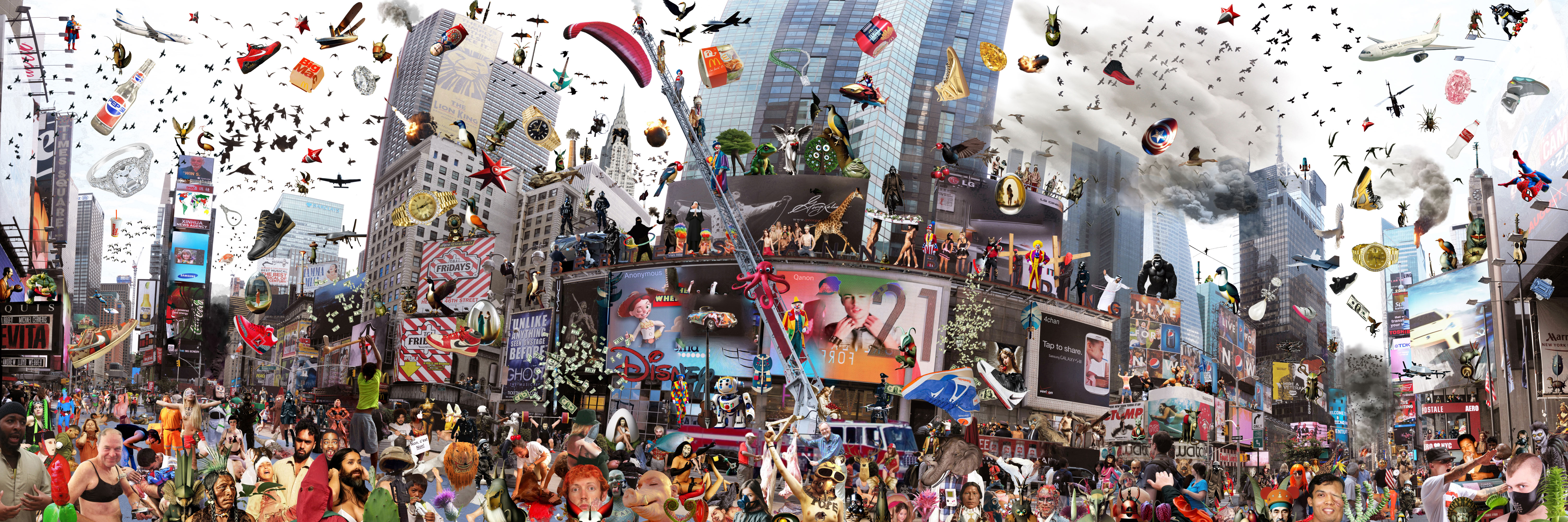 Times Square Nude, After Bosch, New York, USA, 4.5m x 1.5m, 2012–24
