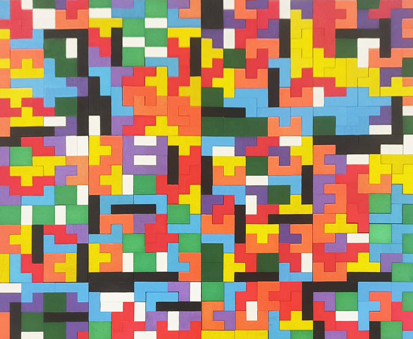 PLAXIS artworks by Johnson-Perkins utilize a combination of PLAY and PRAXIS. Here he incorporates childhood toys, puzzles, and games, which explore abstraction and nostalgia. Through these explorations Johnson-Perkins delves into his own relationship with childlike creativity and invites viewers to do the same. By using childhood materials in these fun and engaging works, such as: Lego, Mega blocks, Robots, Superheroes Motifs and Football references from the 80’s,